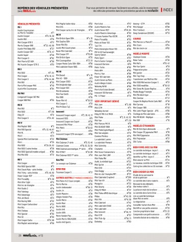 - Des pages et conseils techniques pour entretenir, restaurer, rénover et embellir sa mini (Restaurer des moyeux de roues avant - Rénover le mécanisme d'embrayage pre verto - Poser un fond de compteur personnalisé)