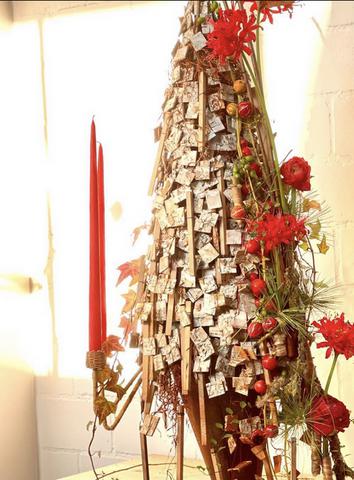 Un arbre de Noël de Bearchsquares … Des timbres de bois qui apportent profondeur et rythme. Une décoration pour la période de l'avent avec quelque fleurs coupées qui peuvent facilement changer.